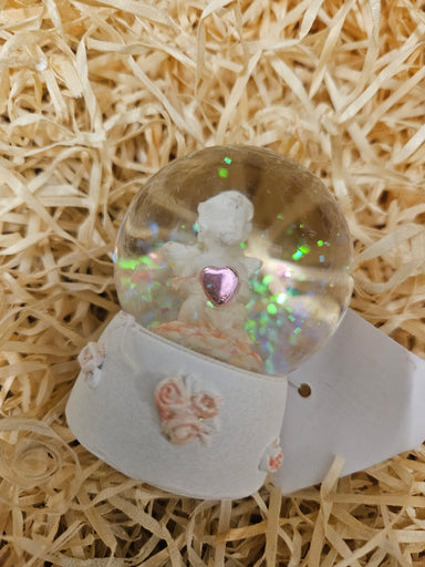 An adorable resting cherub sits in each of these hanging glass balls. There are two different variations and each looks beautiful and elegant.
